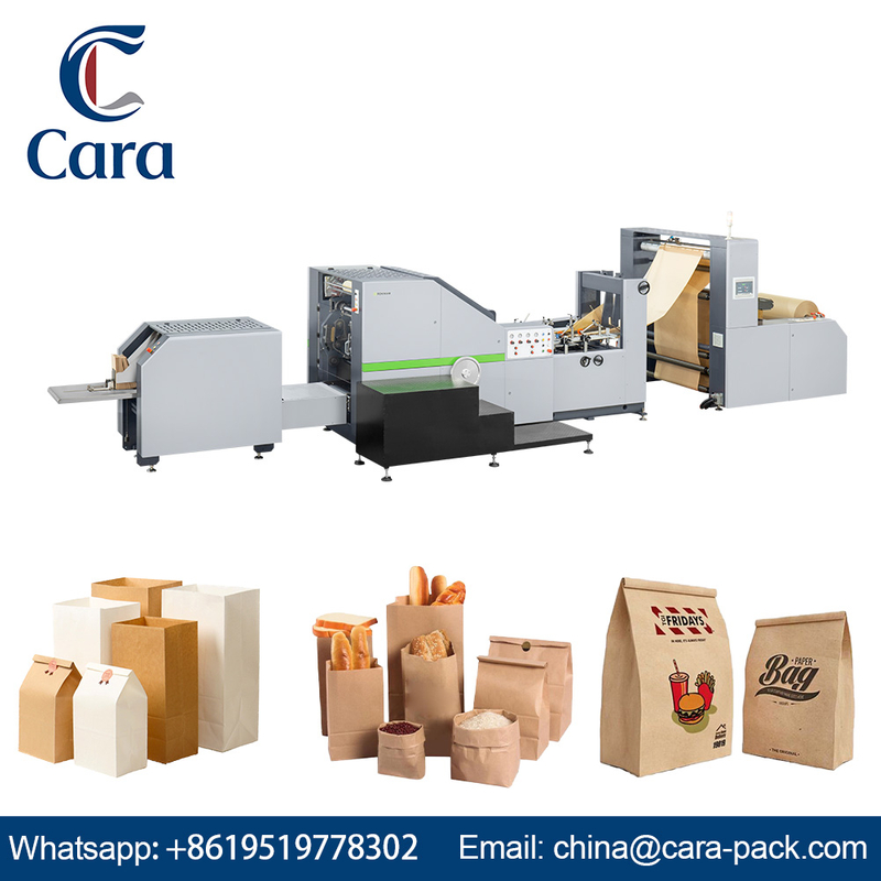 The machine is equipped with a photoelectric tracking system that ensures accurate feeding, cutting, and gluing of the paper bag components.